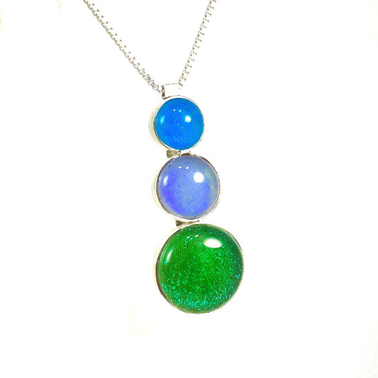 Triple Drop Circle Necklace in Mint, Lavender & Caribbean