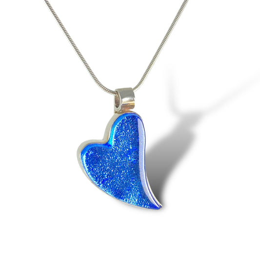 Large Curved Heart Necklace in Sapphire