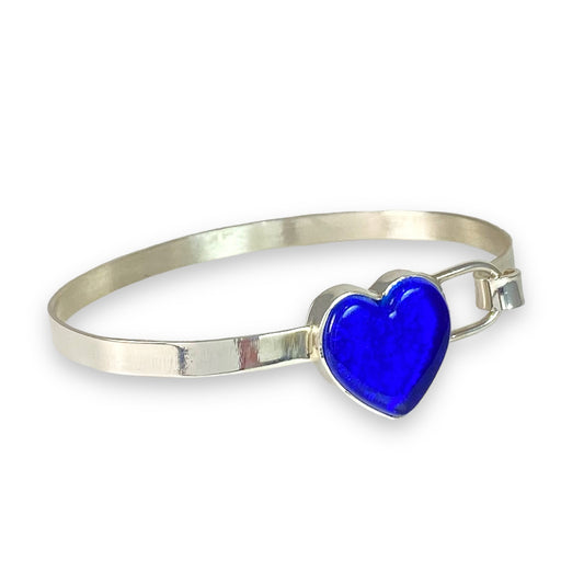 Hand Cut Heart Bracelet in Cobalt Blue