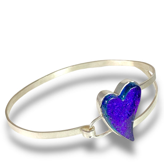 Large Curved Heart Bracelet in Plum Purple