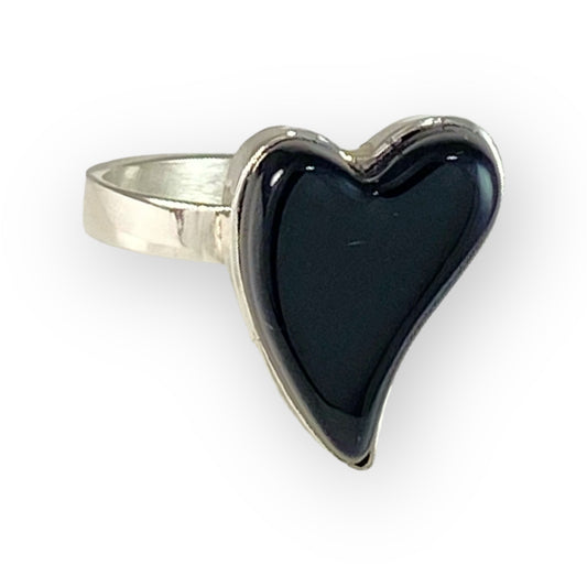 Small Curved Heart Ring in Black