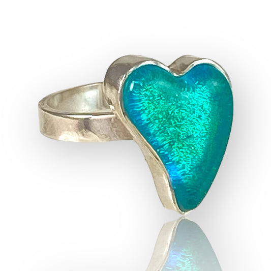Small Curved Heart Ring in Sea Foam