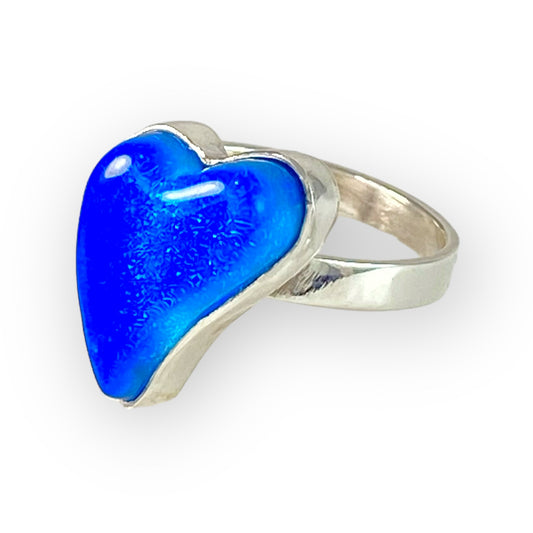 Small Curved Heart Ring in Turquoise Blue