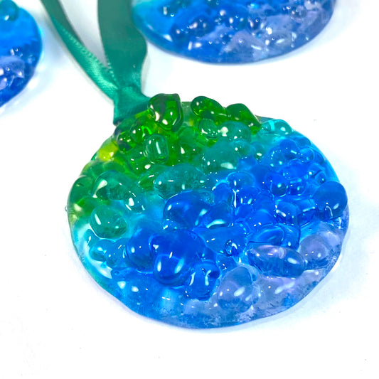 Three (3) Frit Circle Ornaments in Green, Blue & PurpleRegular price $28 USDRegular priceUnit price / per$38 USDSale price $28 USDSale