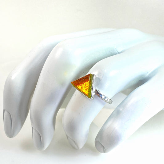 Small Triangle Ring in Amber