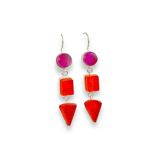 Triple Drop Earrings in Cranberry, Tangerine & Sangria