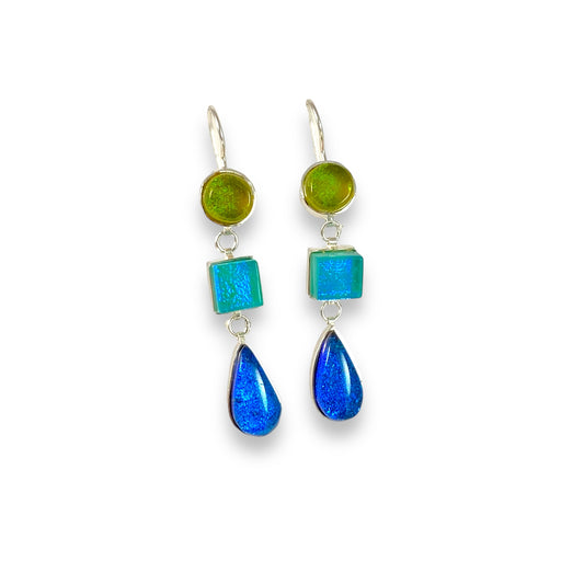 Triple Drop Earrings in Chartreuse, Caribbean & Midnight