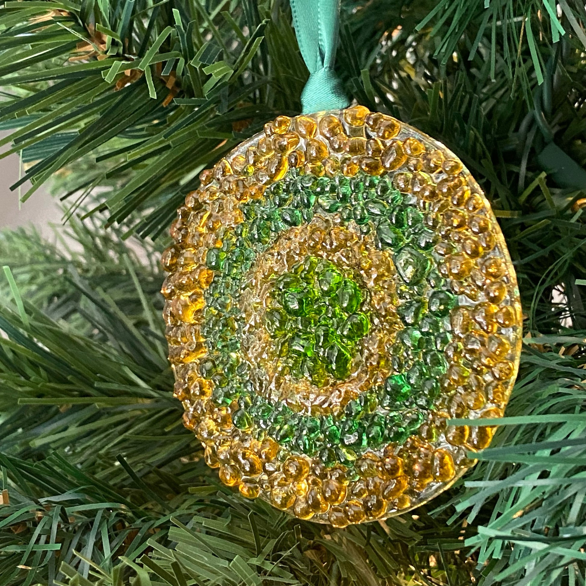 My Bullseye Frit Ornament is an elegant yet playful addition to any home.