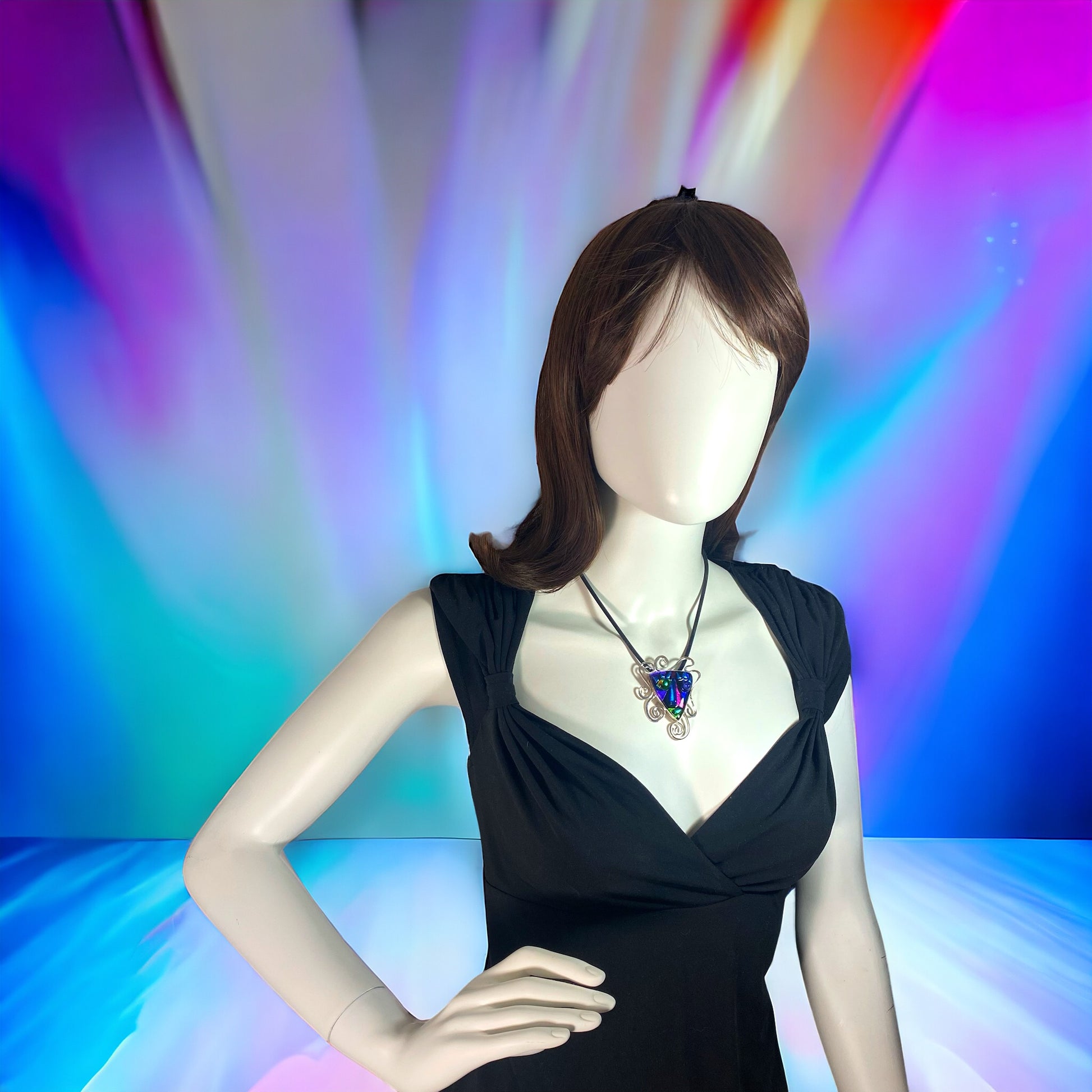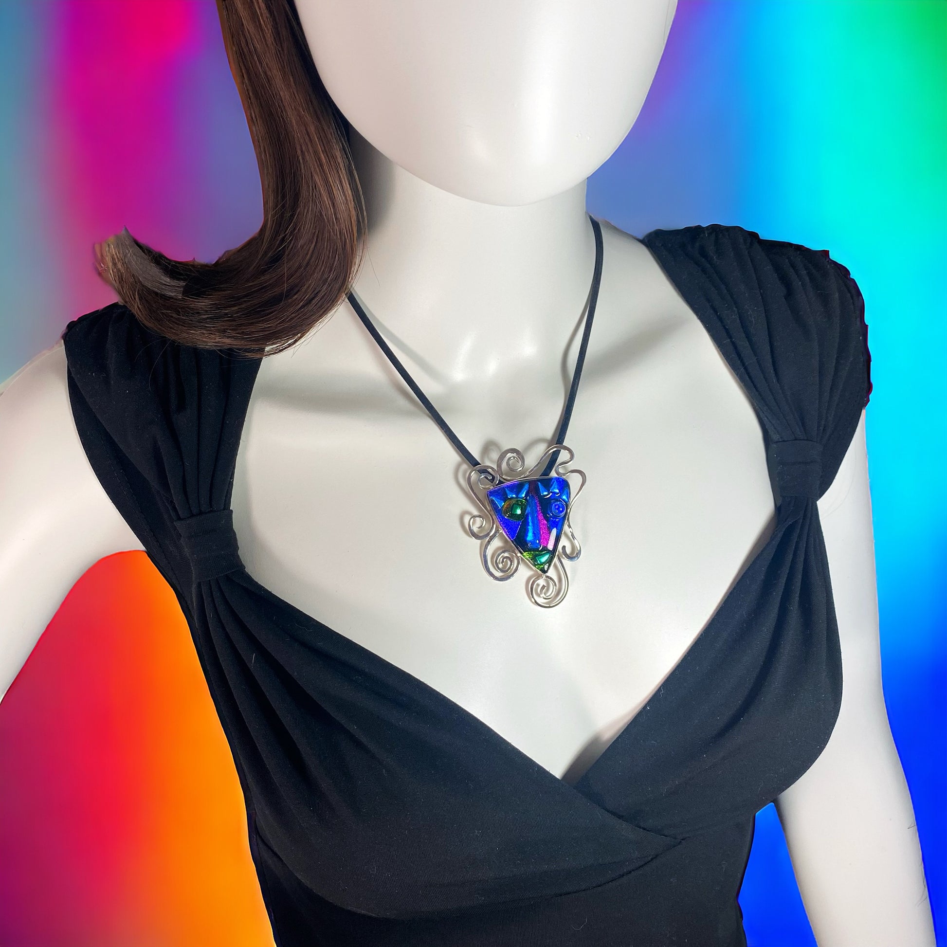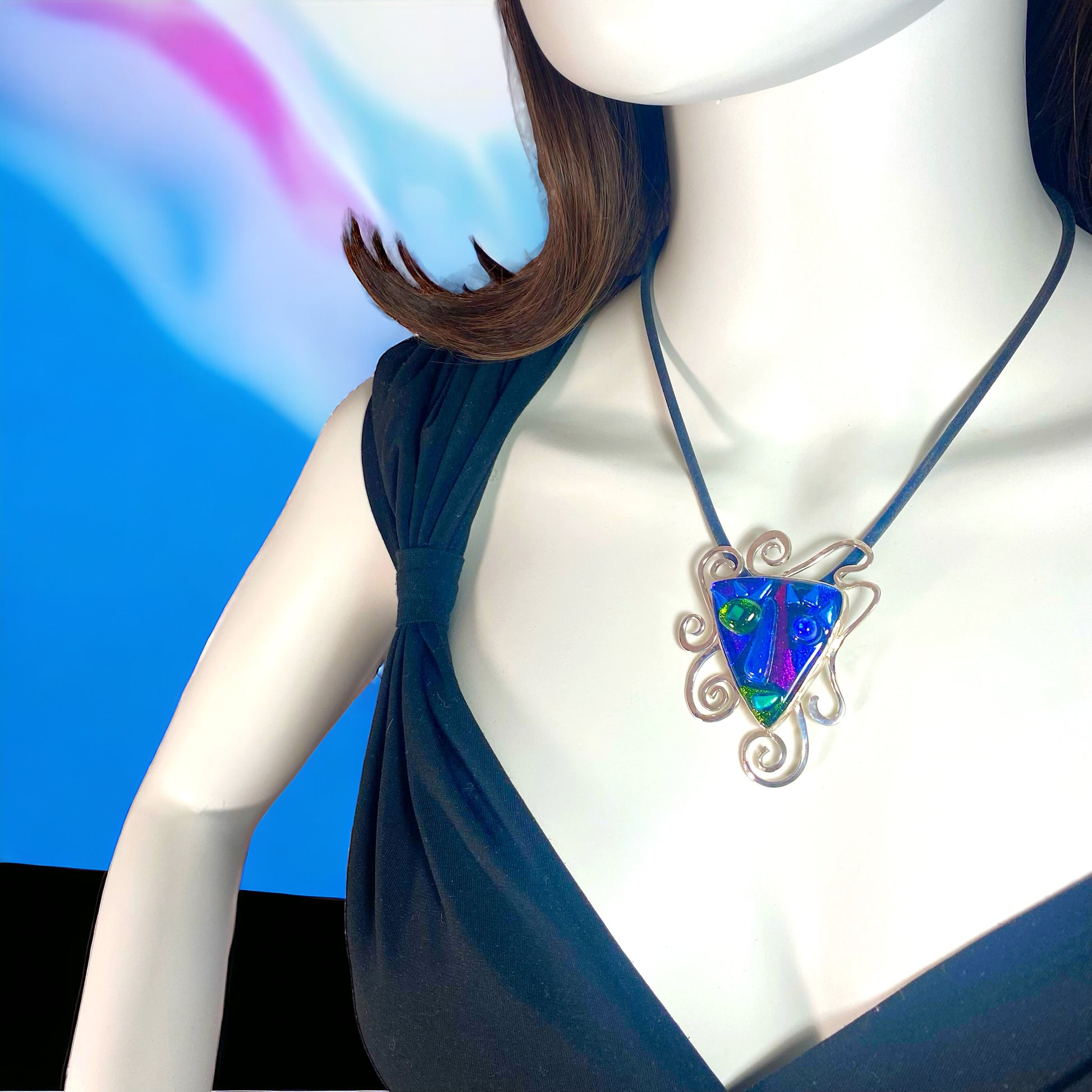 The silver swirls add a touch of drama and make it a standout piece. Wear it as a pin or a pendant for total play in your looks. A luxurious and bold addition to your collection.