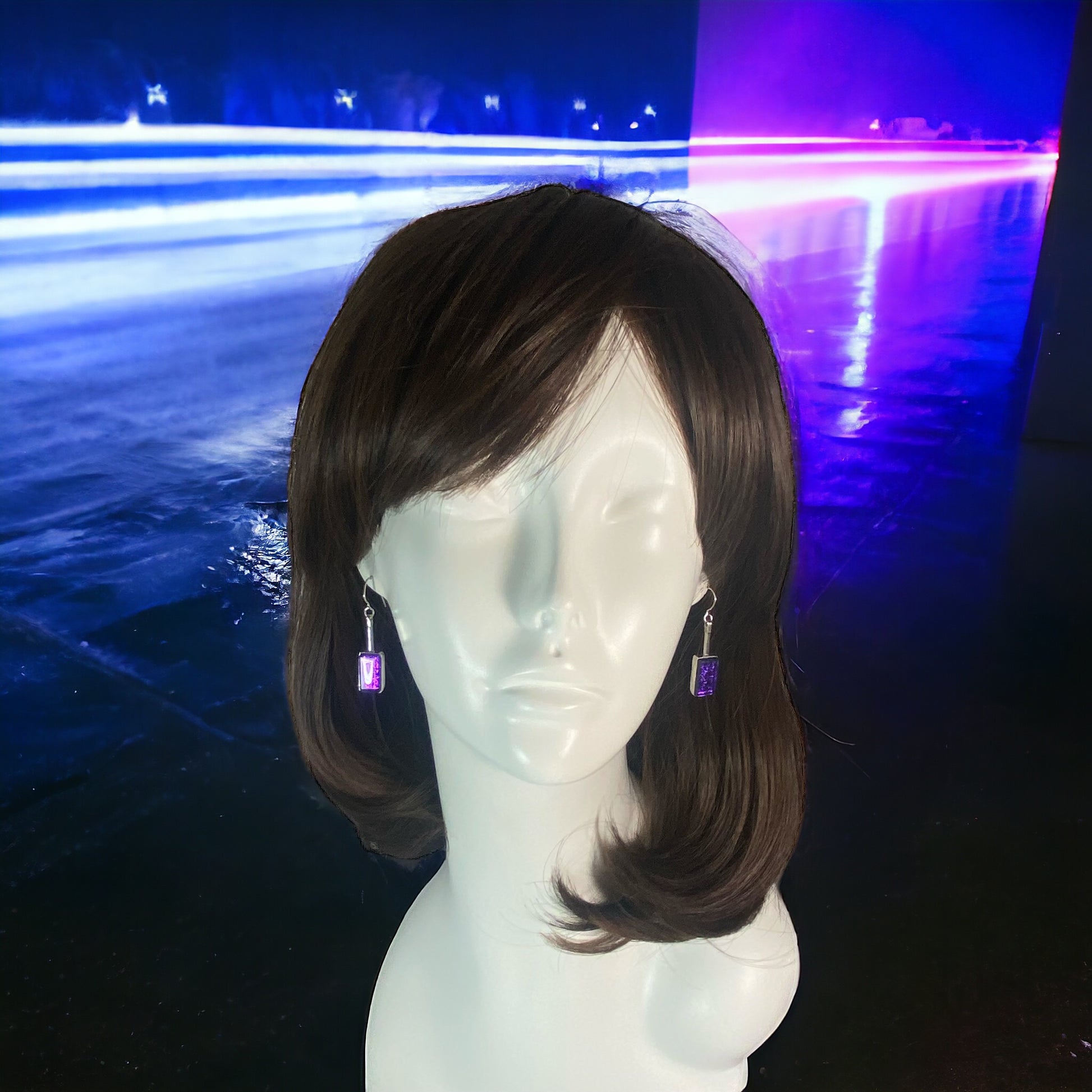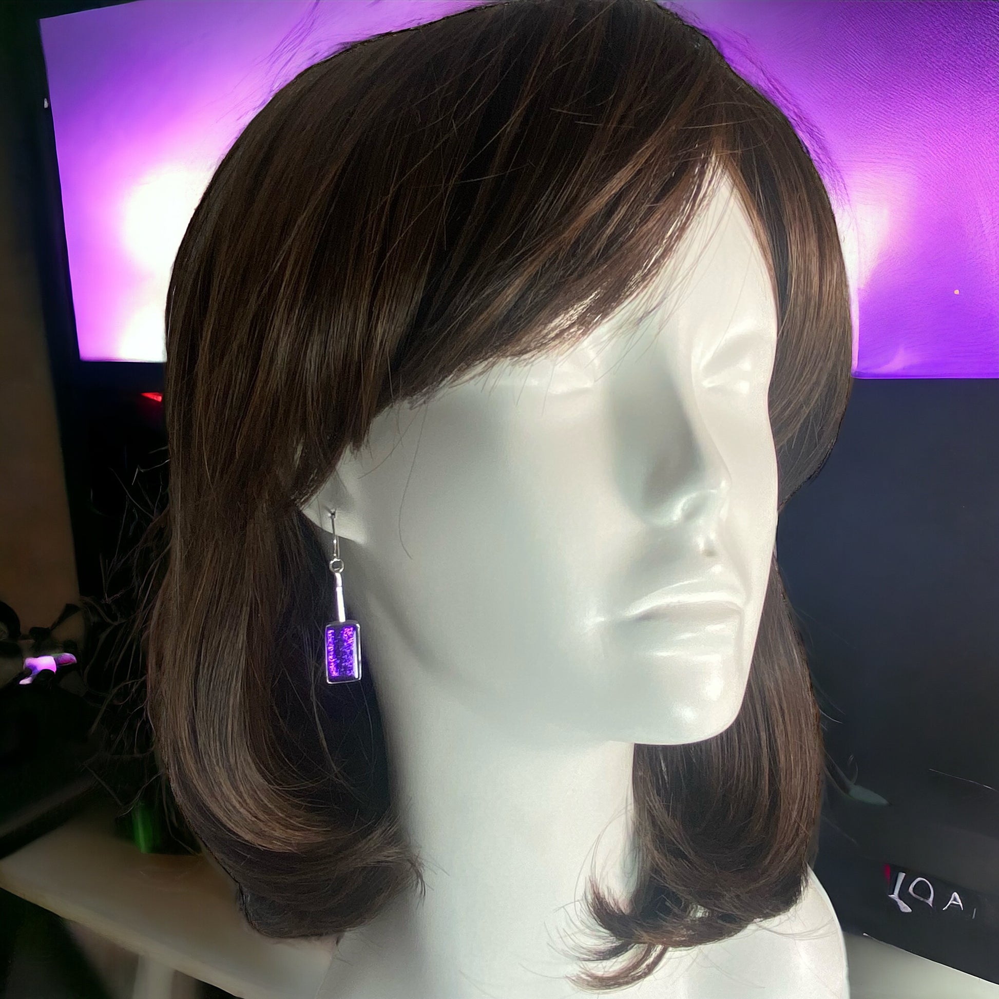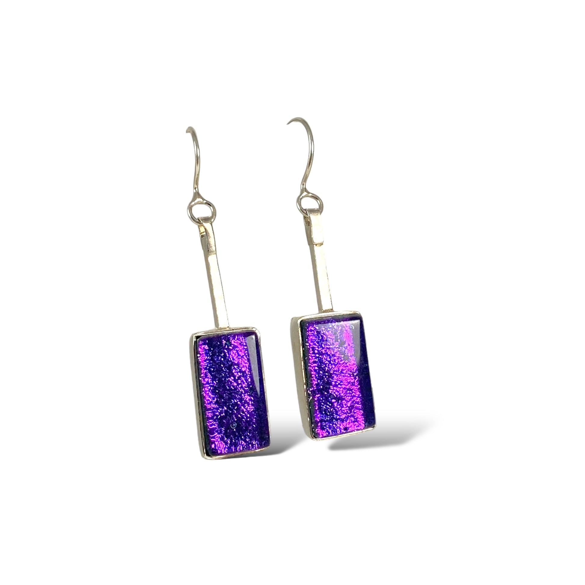 Swing drop earrings (1 1/4" tall) with rectangles (5/8" x 5/16") in grape purple.